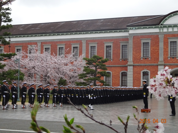 満開の桜が祝福しているかのような海上自衛隊幹部候補生学校(広島県江田島市)にて、第66期一般幹部候補生課程入校式および第36期医科歯科幹部幹部候補生課程始業式が、武居智久海上幕僚長出席の下、多数の父兄、来賓に見守られながら厳粛に行われました。