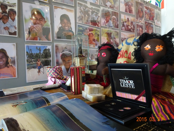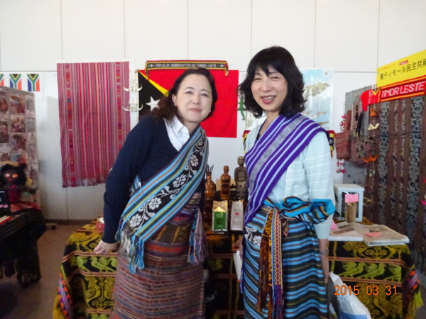美味しい東ティモールコーヒーの試飲会や伝統的な織物タイスの試着も行われ、来場した皆さんは東ティモールに親しく接していただきました。会場ステージでは、南アフリカの情熱的な歌とマリンバの演奏等も行われました。
