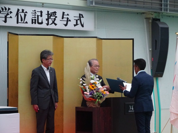 栄えある学位記授与式を迎えることが出来ましたのは、 本人の懸命な努力はもちろんですが、 田辺指導教授の公私にわたる厳しくも温かな親身のご指導の賜物です。 また多くの大学職員はじめ関係者のご支援があったればこそです。 さらに東ティモールの人材育成の為、 長年にわたり心血を注いで来ている風間先生の熱い思いとご尽力のお蔭です。