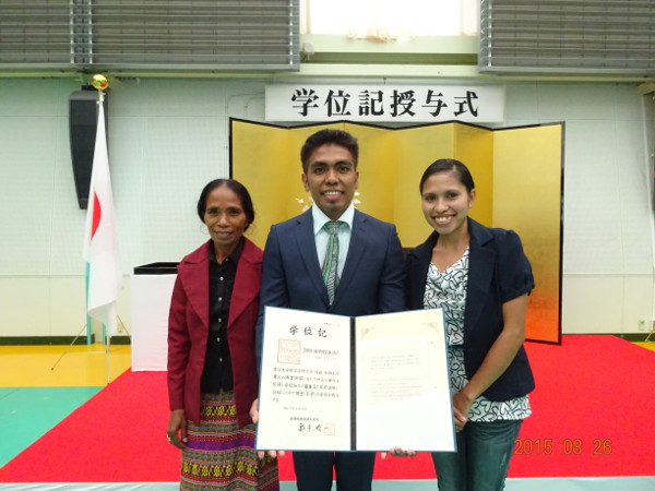 東ティモール人が日本の大学から博士号を授与されたのは、 本年3月25日に岐阜大学から授与されたカンシオ学生に次いで史上2人目の 快挙です。 2人とも、人間的魅力溢れる有為な人材です。