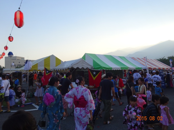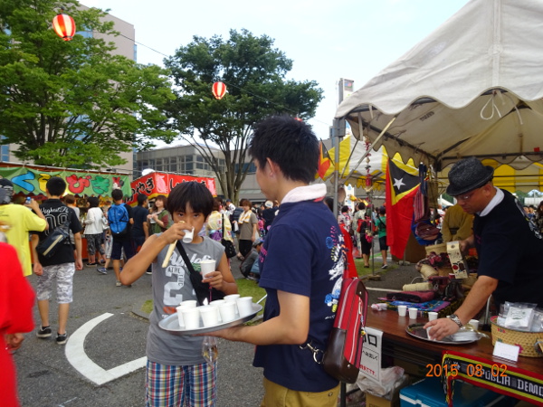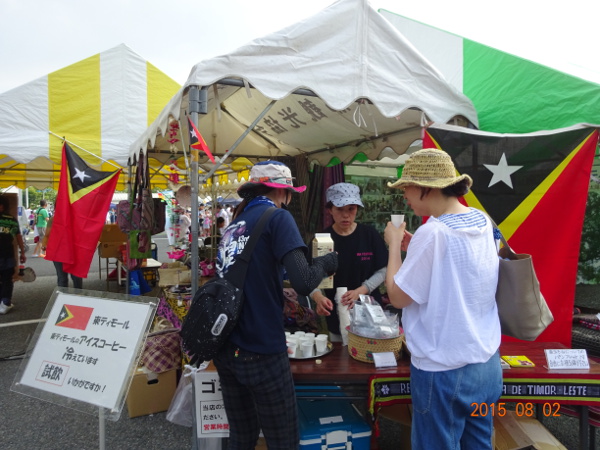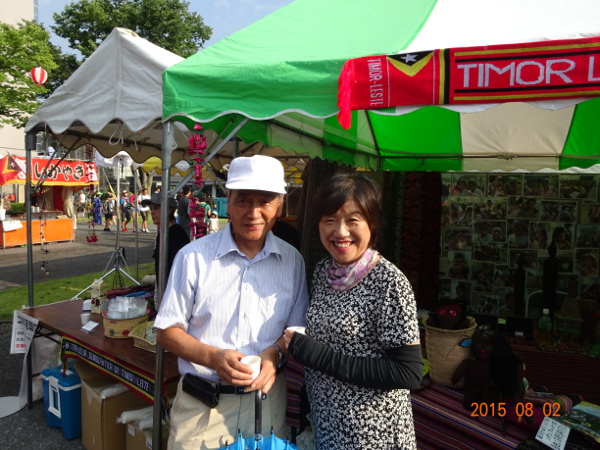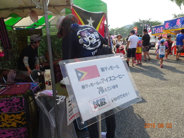 お祭り会場に来た皆さんに人気があったのは、冷たく冷やしたカフェティモールの試飲です。 「知らなかった」、「美味しい」、「特徴がある」、「苦い」、「今夜は眠れない」等々。 東ティモールコーヒーが、伊那市役所の皆さんを通じて外交官の役割を果たしてくれました。