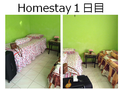 5日目、6日目は2日間のホームステイをしました。これが私たちの部屋です。ホームステイ1日目はホストファミリーに山に連れて行ってもらい、 一日中そこで過ごしました。東ティモールの山はこんな感じで、ちなみにこれはパイナップルです。日本とは違った種類の豊かな自然を満喫することができまし た。山の道路はまだ舗装されておらず、後部座席にシートベルトなしで4人座った状態で、時々宙に浮くぐらい、私たちの体験したことがないほど揺れました が、それも楽しい思い出となりました。山の教会にも連れて行ってもらい、そこでポルトガル語の聖歌を、発音を教えてもらいながら歌いました。山の家の前に は東ティモールの名産品、コーヒー豆が干されていました。
