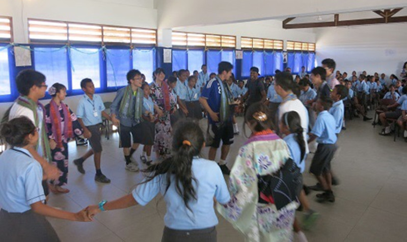 お二人は、帰国後全校集会で研修報告をされました。同校の船橋 巌先生は、お二人の報告を通じて「東ティモールが、大変近しい国となりました」と語ってくださいました。