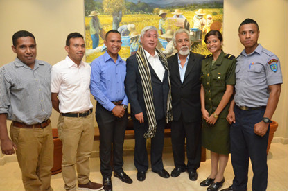 中谷防衛大臣は、滞在中、5名の防衛大学校を卒業した東ティモール軍留学生にも会われました。留学生の一人は、中谷大臣の部隊視察等に同行し通訳等も立派に務めました。