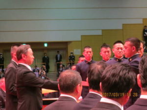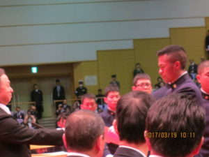 安倍内閣総理大臣、稲田防衛大臣が見守る中、東ティモールからの留学第3期生2名(陸・海、各1名)も、国分校長から直接卒業証書を授与されました。