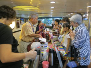 クルーズブームの中、横浜港大さん橋に停泊しているピースボートのオーシャンドリーム号の船内見学会には、家族連れを始め沢山の皆さんが乗船され、憧れの船旅に夢を馳せていました。