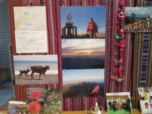 ホストタウンに関する資料や写真、伝統織物タイスをはじめ様々な工芸品、子供達の笑顔の写真、伊那市民の皆さんが東ティモールを訪問されたりマラソンに参加したときの写真、登山家田部井淳子さんの東ティモール最高峰ラメラウ山登頂の様子、現地で活躍する日本のNGOのパンフレットなど、沢山の今の東ティモールがロビーに出現しています。