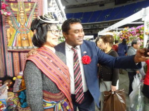 東ティモール大使館の看板を掲げた東ティモールのブースは、伝統織物タイスや様々な工芸品、東ティモールコーヒーそして大使館の中村首席補佐官が懸命に育てて来た東ティモールの蘭(残念ながら花は咲いていません。今年のグランプリを受賞した蘭と同種)の鉢植えなどでいっぱいです。
