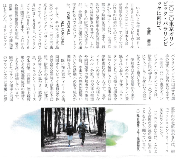 投稿日: 2019年3月1日2019年3月3日 投稿者: 日本東ティモール協会伊那市広報誌「ふるさとだより」3月号に掲載されました 伊那市広報誌「ふるさとだより」に「2020年東京オリンピック・パラリンピックにむけて」pdf