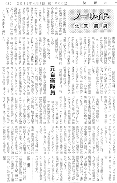 「防衛ホーム」紙の「ノーサイド」欄へ「元自衛隊員」が掲載されました