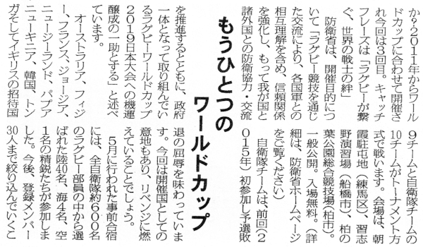 投稿日: 2019年7月1日2019年7月4日 投稿者: 日本東ティモール協会「防衛ホーム」紙の「ノーサイド」欄へ「もうひとつのワールドカップ」が掲載されました 防衛ホーム紙ノーサイド欄「もうひとつのワールドカップ」pdf