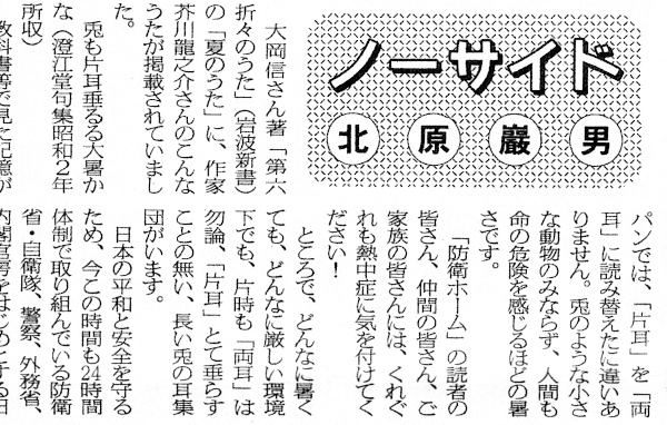 「防衛ホーム」紙の「ノーサイド」欄へ「夏。あの頃そして今」が掲載されました