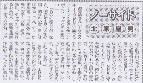 「防衛ホーム」紙の「ノーサイド」欄へ「寅さん」が掲載されました