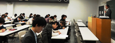 北原会長は、母校の中央大学の学生の皆さんに、東ティモールの現状と課題等についてパワーポイントや資料を活用したり、東ティモールの音楽や同国で 親しまれている日本の音楽(五輪真弓さんの「心の友」)を流すなどして、直接語りかけました。学生たちからは、多くの質問も寄せられました。