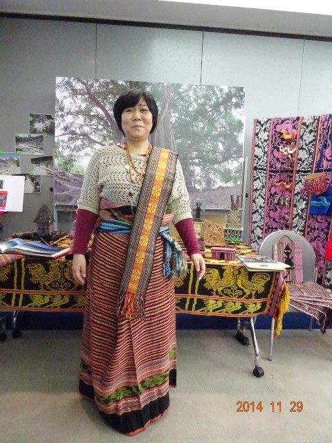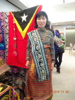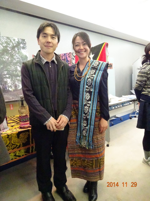 また、女性の皆さんに、東ティモールの伝統織物「タイス」のスカートを試着し楽しんでて頂きました。皆さん、とてもお似合いです!