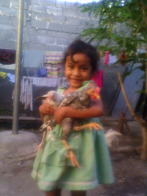 ↑「鶏2匹持てたよー!」クリスタちゃん。